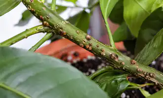 Torkning av löv signalerar oftast för torr luft från heta radiatorer eller brist på kalium i jorden.