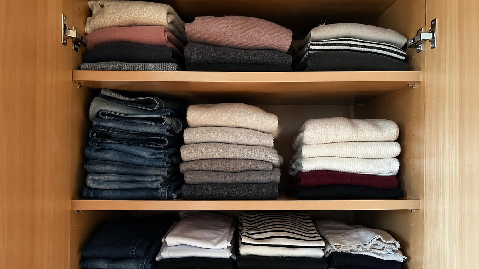 Ordna regelbundet om de yttersta staplarna med tröjor och jeans